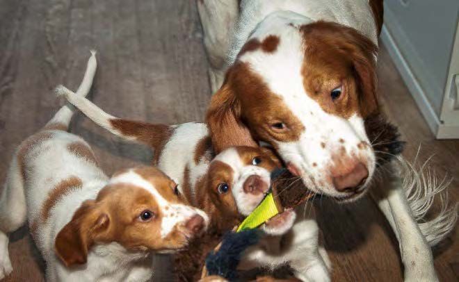 Hunter's Heart Kennels has been breeding working Brittanys for over 20 years. We provide extensive extra-early socialization for our litters, using best practices from the latest Guide Dog Research. Rely on our experience so you don't need to reinvent the wheel! We'll select suitable playmates to help socialize your puppy, get your puppy off to the best start possible, and have fun at every session.